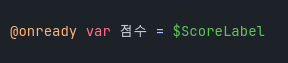 - 점수 텍스트를 만들 때, @onready를 변수 옆에 표기하면 게임이 시작할 때 _ready() 에서 변수를 등록하지 않아도 알아서 가져온다고 한다.