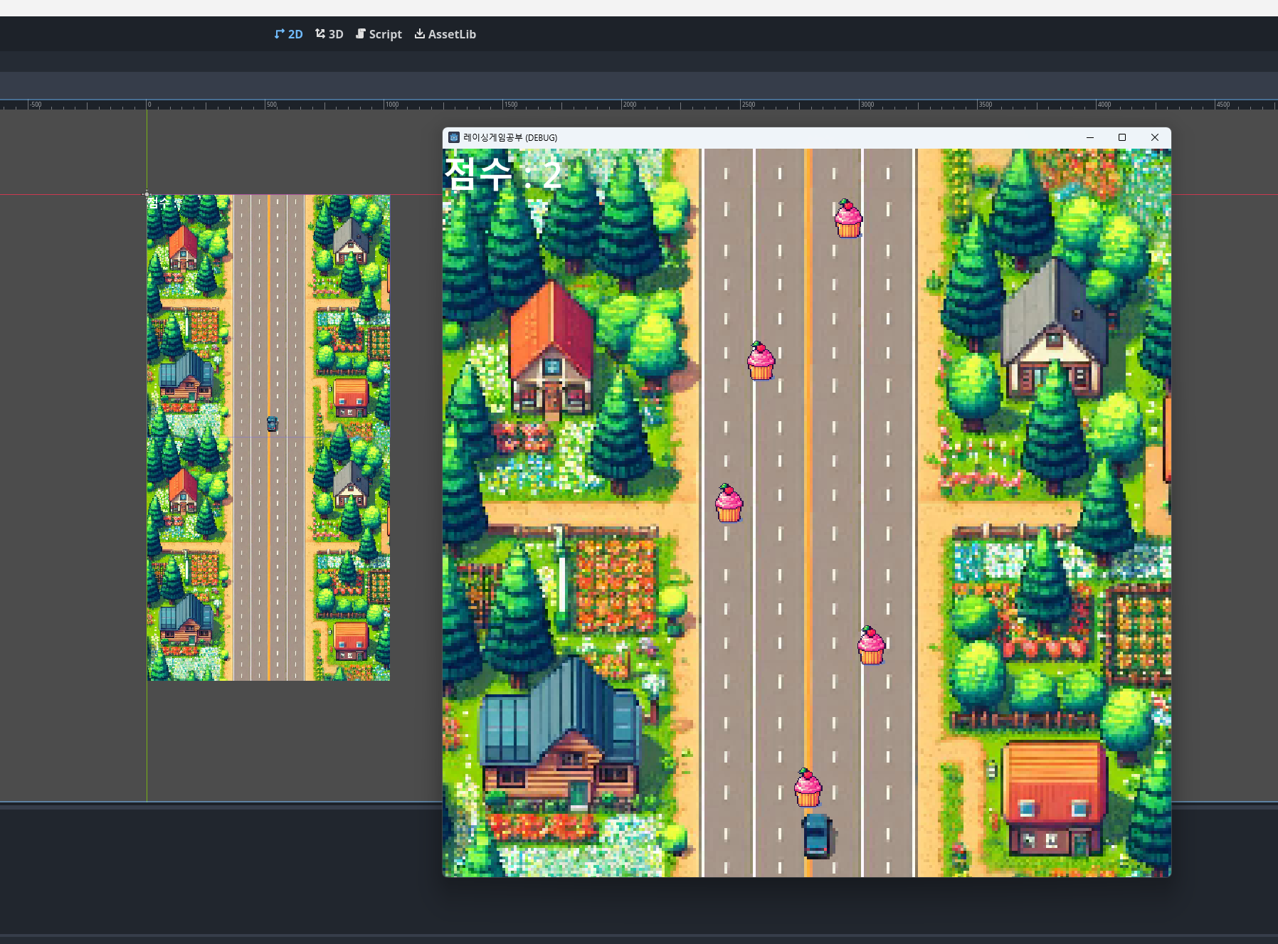 아니면 저 기본 틀에서 조금씩 차량의 속도를 높히고, 장애물을 추가하고, 목숨을 3개 정도만 만들어서 게임 오버 시스템을 만들어도 꽤나 그럴싸한 게임이 완성된다.