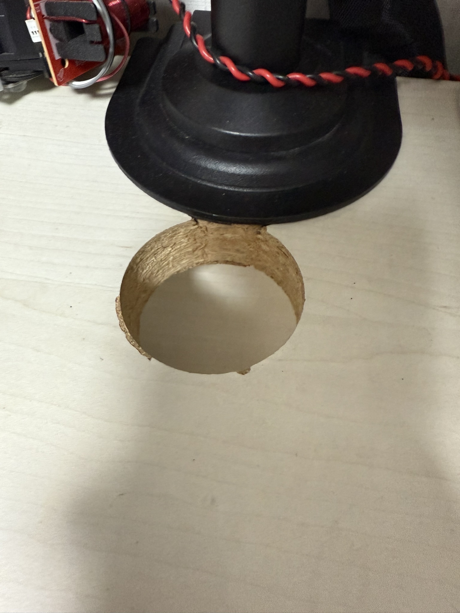 임의로 구멍을 내서 원래 책상 구멍을 막는 커버는 크기가 맞지 않았다.