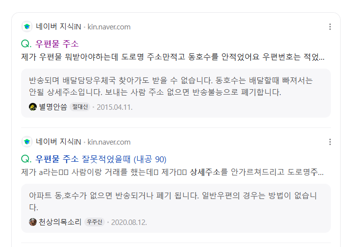 그리고 상세주소가 없으면 보통은 폐기하거나 반송된다고 하니