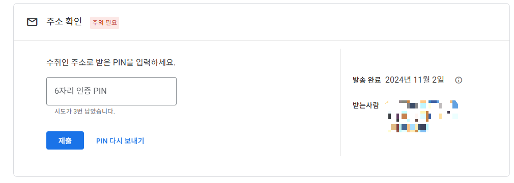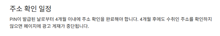 | 구글 애드센스 핀번호 우편으로 주소 확인하기 (0) | 2024.12.12 |