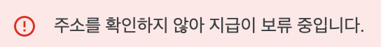 며칠이 지나고, 다시 페이지를 열어보니 이번에는 주소가 확인되지 않아 지급이 보류 중이라는 경고가 떠 있었다.