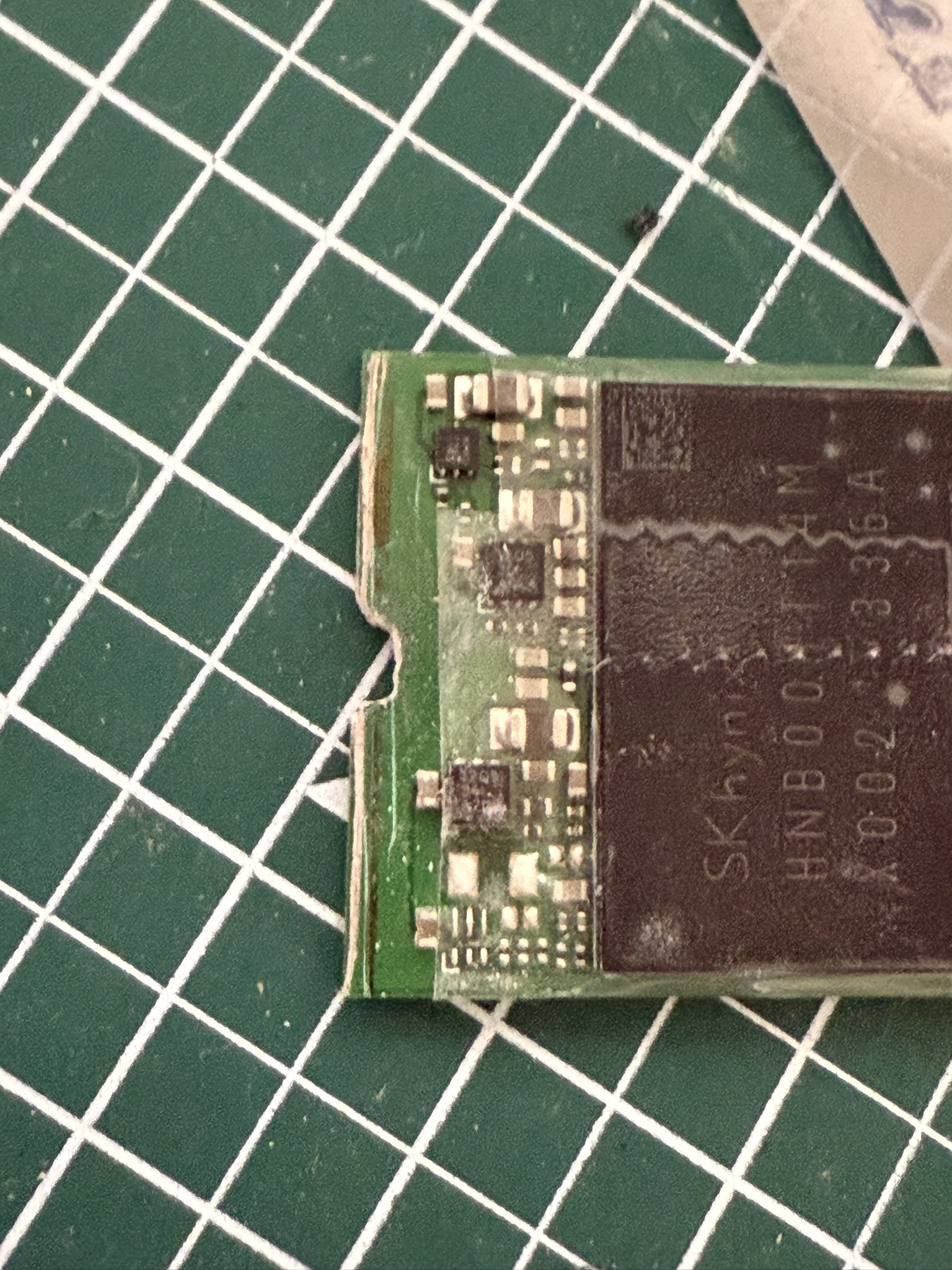 자른 SSD의 끝부분( 홈이 있는 부분) 을 SSD에 겹쳐서 붙인다.