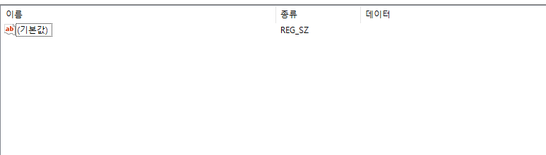 이제 InprocServer32 키를 클릭하면 우측에 아래와 같이 (기본값) 이 있고 데이터는 (값 설정 안 됨) 이 있다.