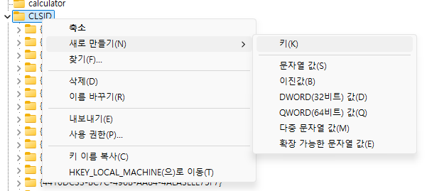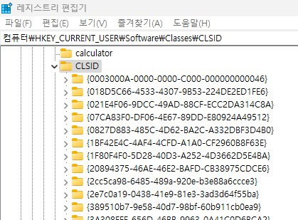 컴퓨터\HKEY_CURRENT_USER\Software\Classes\CLSID 까지 이동한 뒤