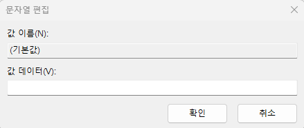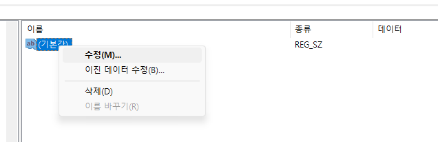 기본값을 더블클릭하거나 우클릭 메뉴의 수정을 눌러 편집기를 연다. 그리고 그냥 확인을 누른다.