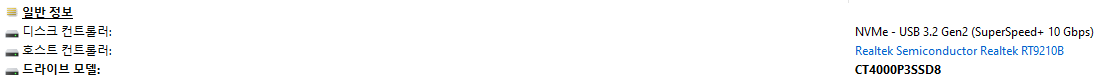 사용하는 SSD 인클로저도 상품 설명에 최대 10gbps를 지원한다고 되어있으니 범인이 아니다.