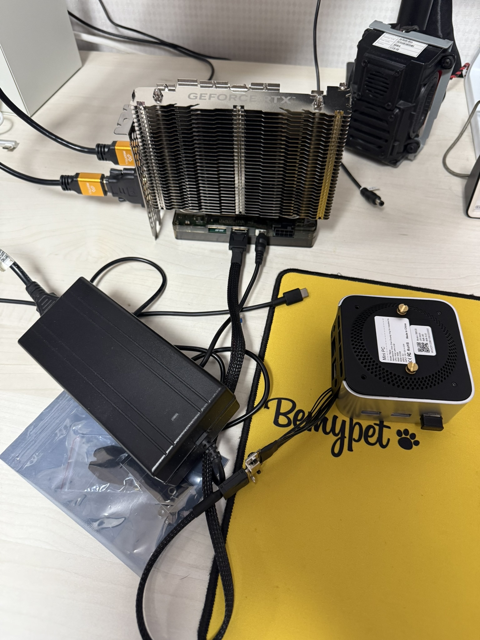 마지막으로 oculink cable을 미니PC에 내놓은 변환기 포트에 꽂으면 완성이다.