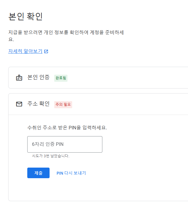 구글 애드센스 PIN 다시 보내기