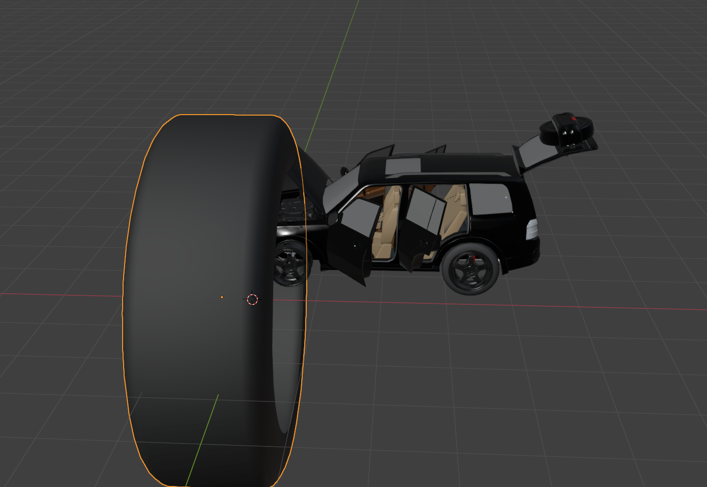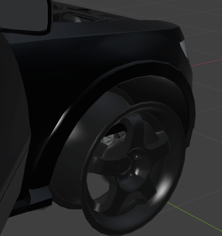 에셋의 기능을 추가하기 위해 블랜더로 모델링을 수정한 후 fbx로 내보냈는데 원본에 있던 타이어 모델링을 누락해버렸다.
