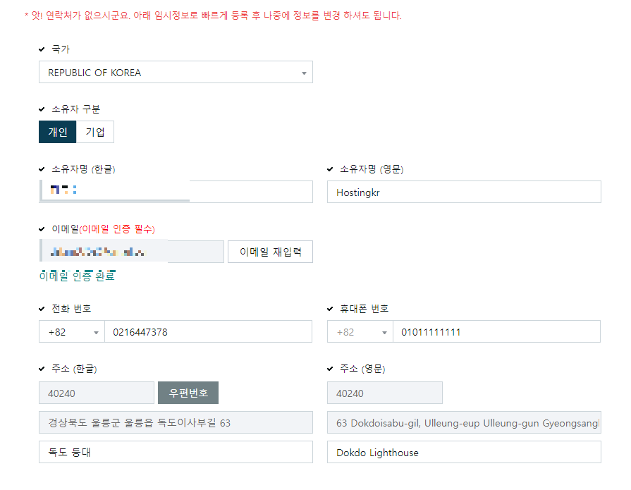 뜬금없이 주소지가 독도로 등록되어있어서 뭔가 싶었는데