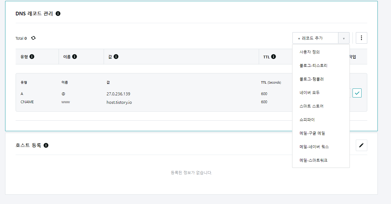 사이트가 업데이트된건지 레코드 추가에 블로그-티스토리 항목이 있다.