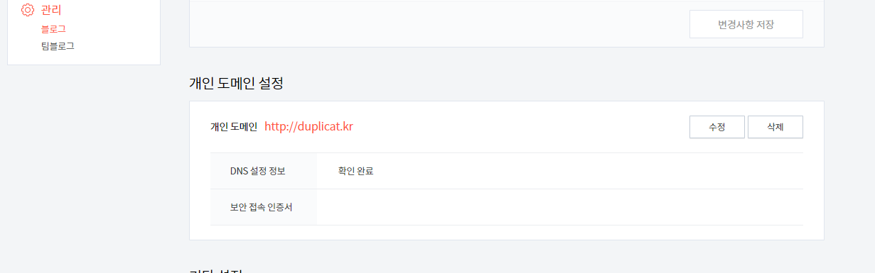 이제 다음은 이 도메인을 티스토리에 등록해야한다.