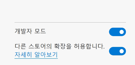 이제 브라우저에서 확장 설정에 들어가 개발자 모드를 활성화하고