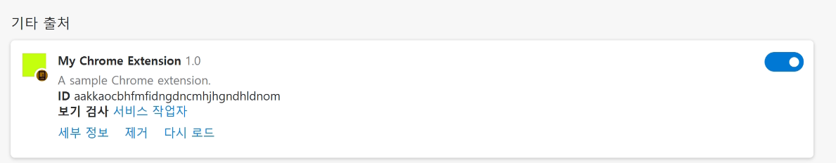 이제 브라우저에서 확장 설정에 들어가 개발자 모드를 활성화하고