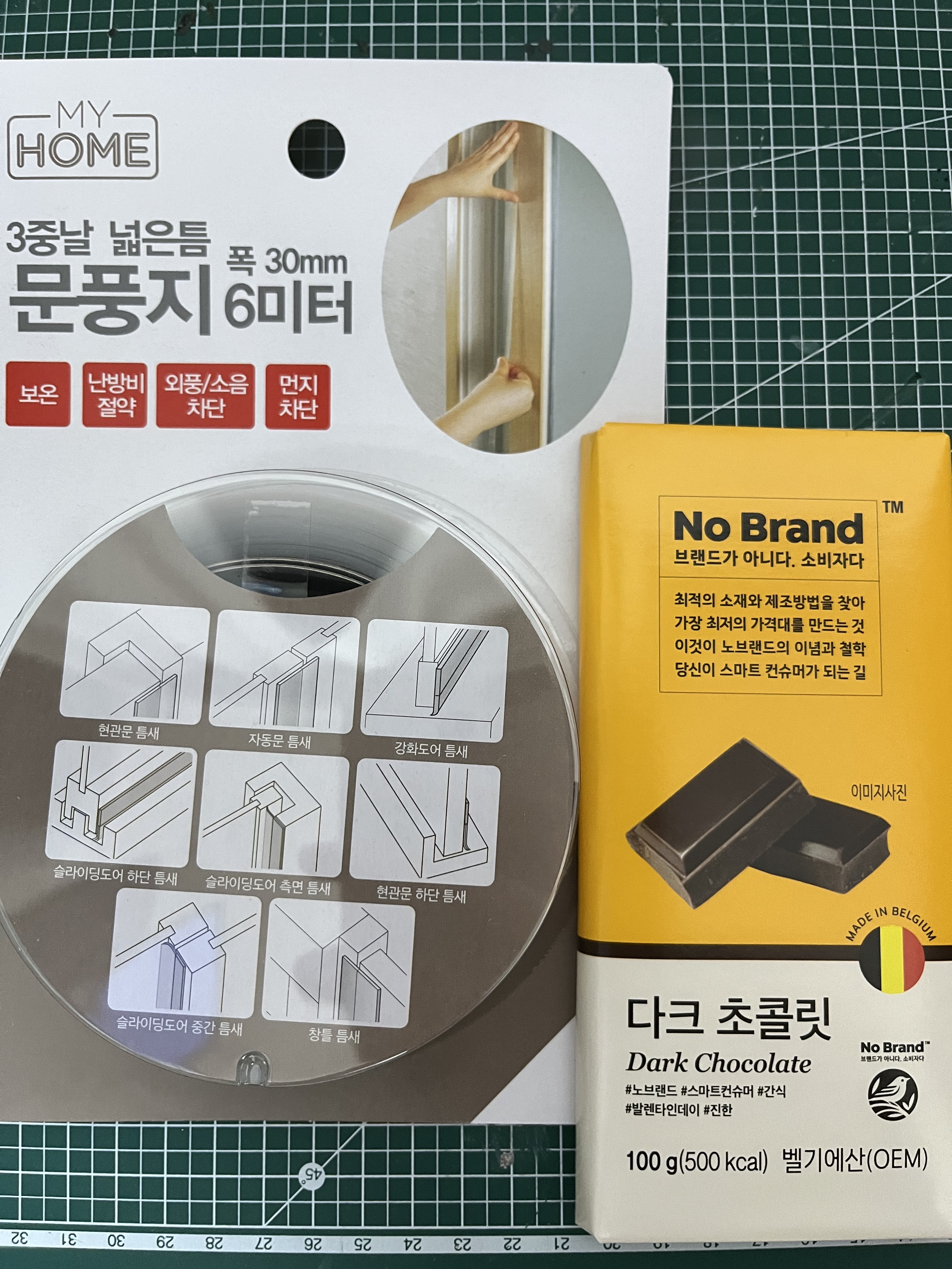 노브랜드 문풍지테이프와 간식용초콜릿
