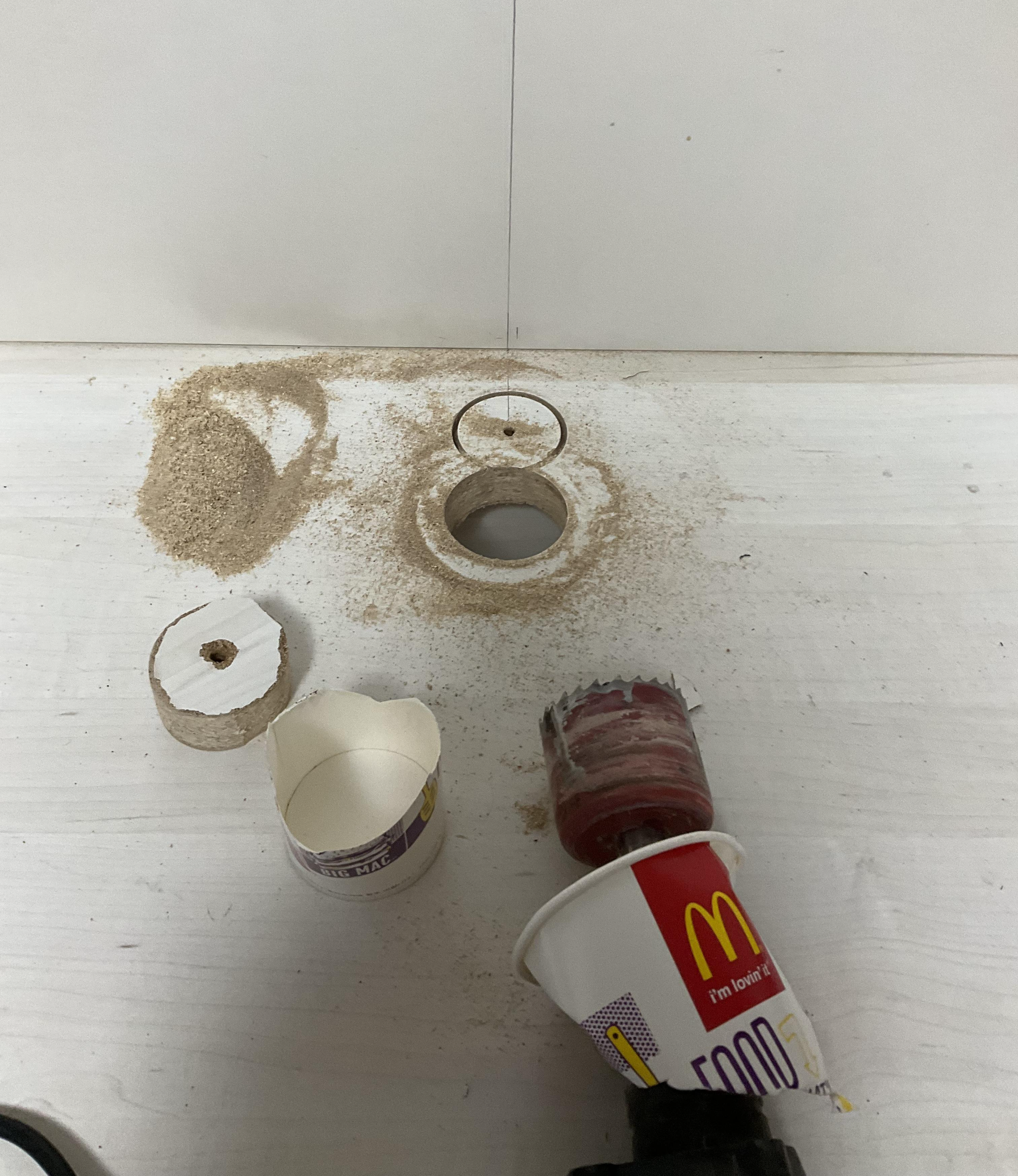 그러기 위해서는 모니터 암의 기둥을 설치하기 위해 책상 가운데에 구멍을 뚫어야 했다.