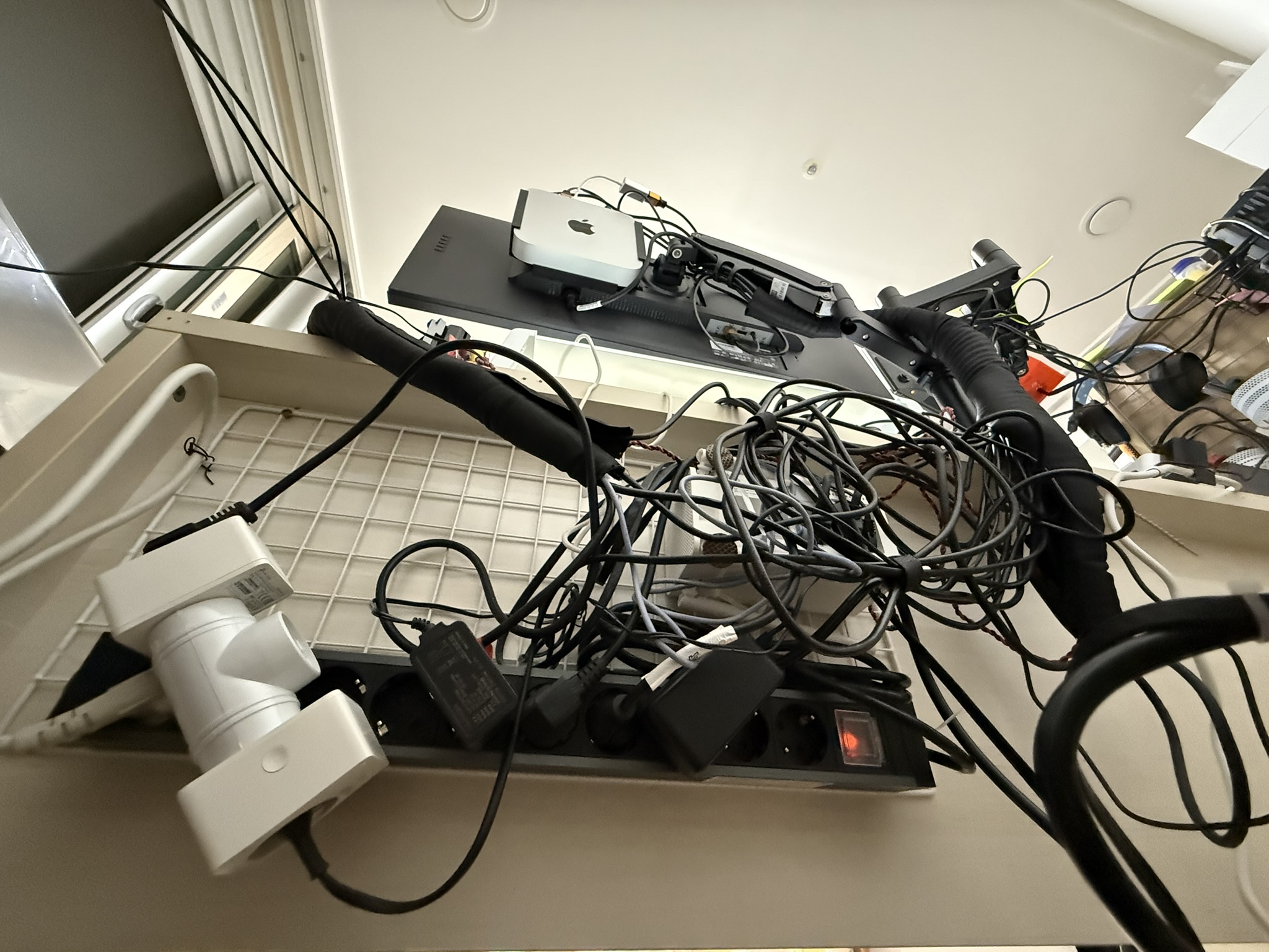 내 방의 책상 뒤에는 멀티탭들을 줄줄이 연결해서 선들을 꽂았는데