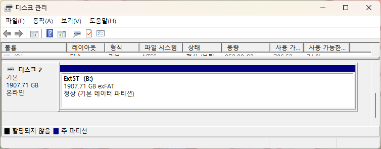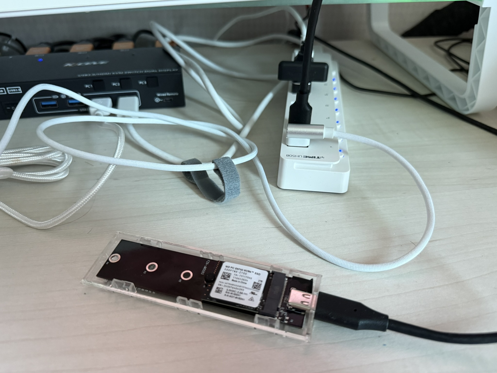 한번 외장 인클로저에 끼운 후 USB허브에 연결했다.