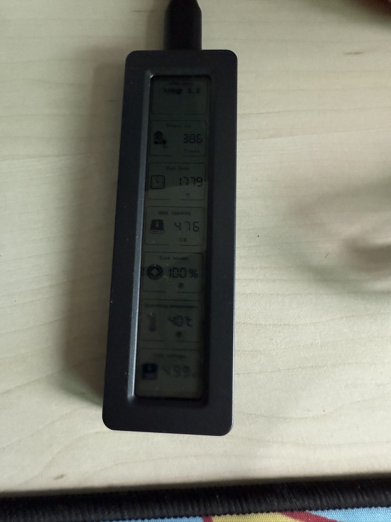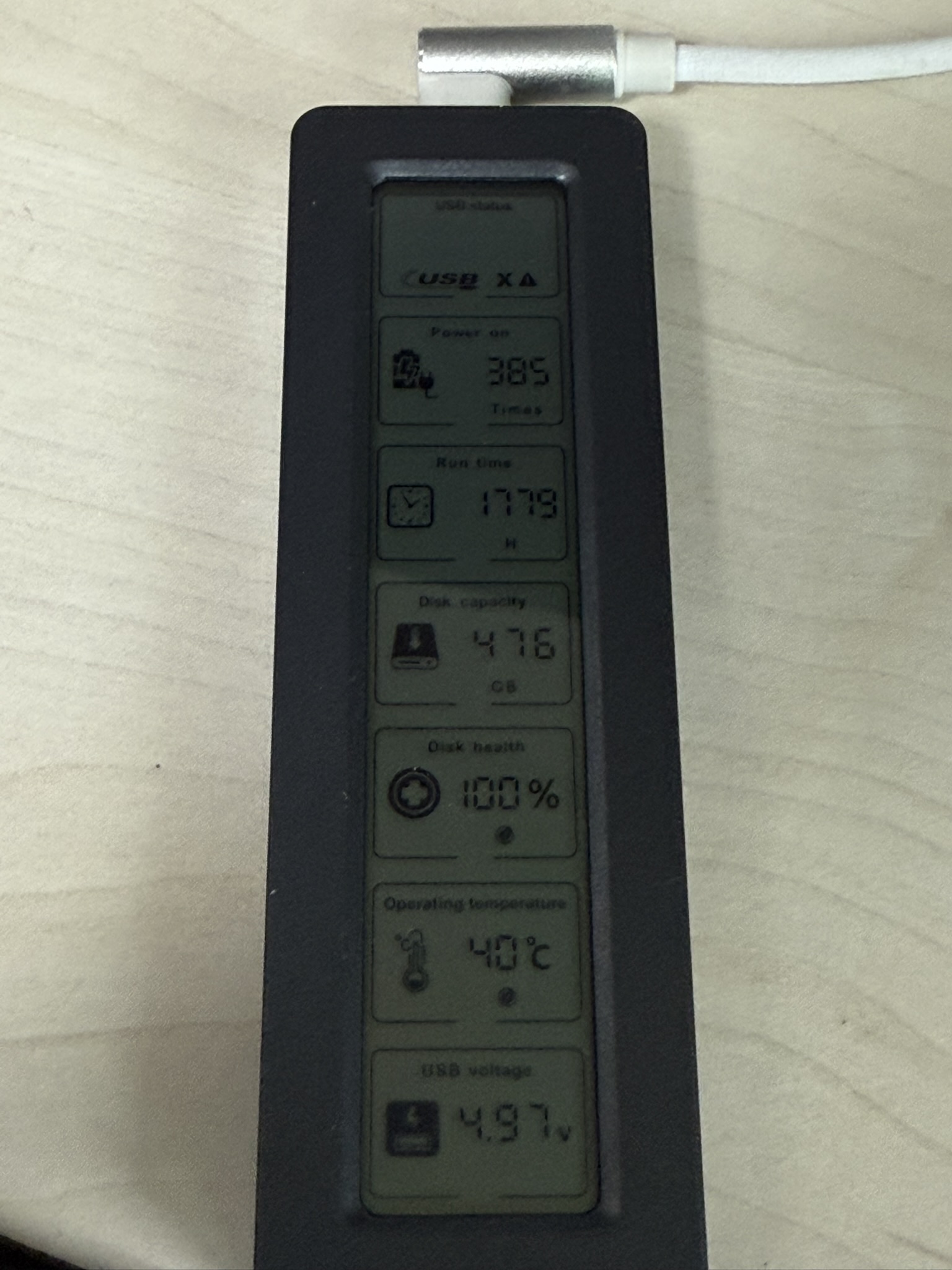 한번 연결해보니 액정에 정보가 들어온다. 맨 위에는 USB가 연결이 되었는지 여부와 USB2, USB3.2 로 구분해서 보여준다.