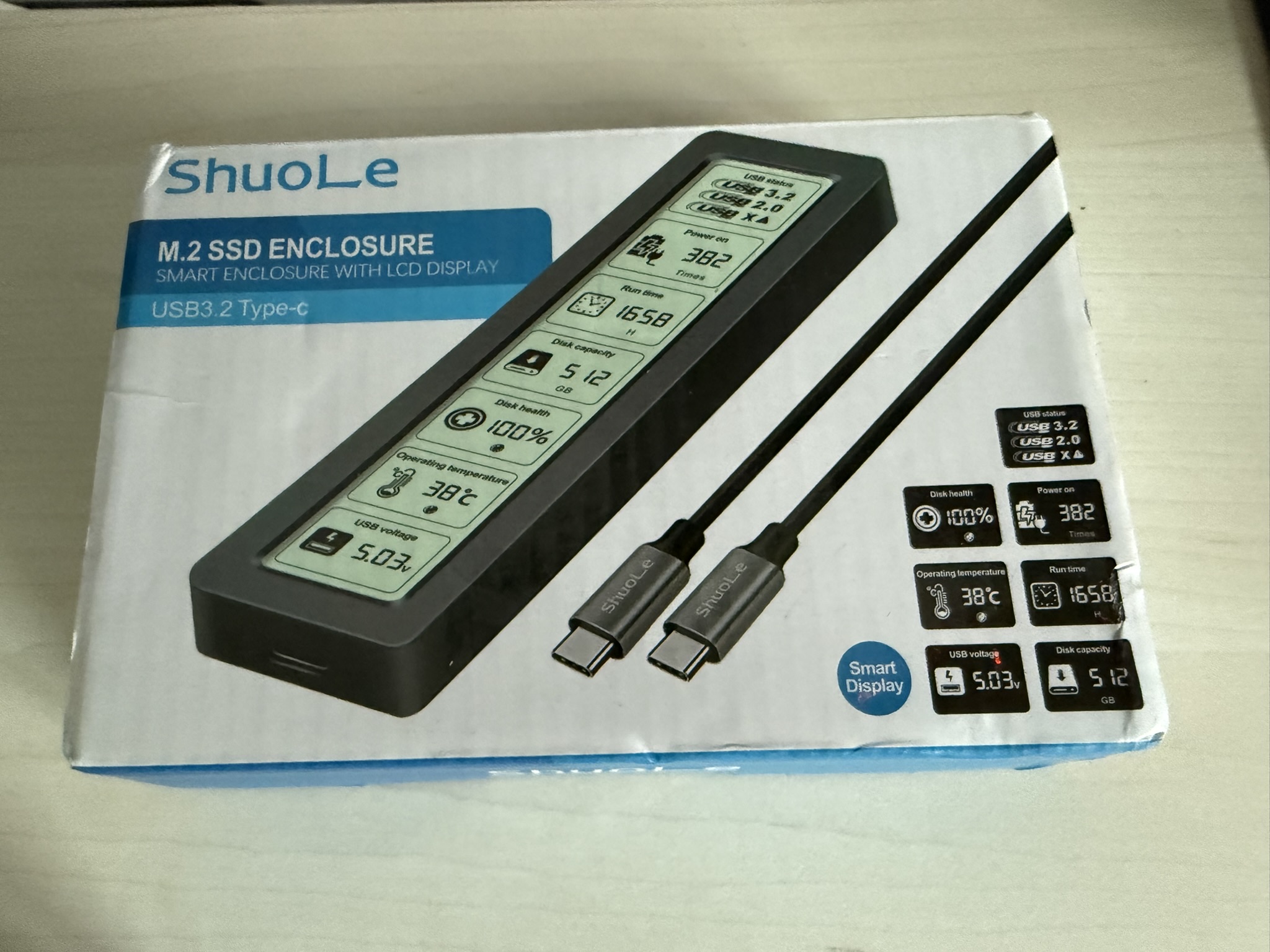 이전에 2TB ssd를 구매하면서 재밌어보이는 인클로저를 발견했다. 액정 화면으로 SSD 상태를 보여준다고 한다.