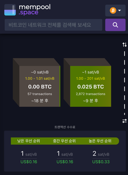 전송 수수료를 확인한다. 마침 1sat/vB로 낮은것을 확인했다.