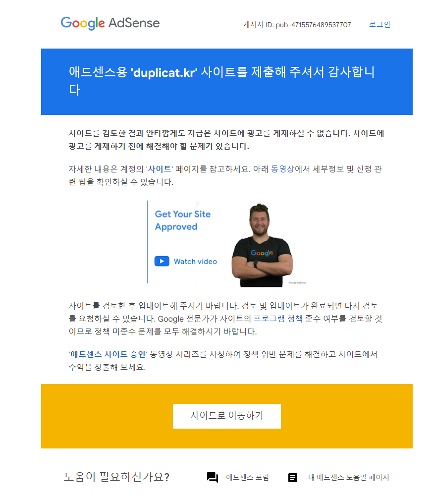 사실 별 문제없다. 저번보다 바뀐것도 없다. 그냥 오늘 구글 애드센스 불합격 메일이 왔을 뿐이다.