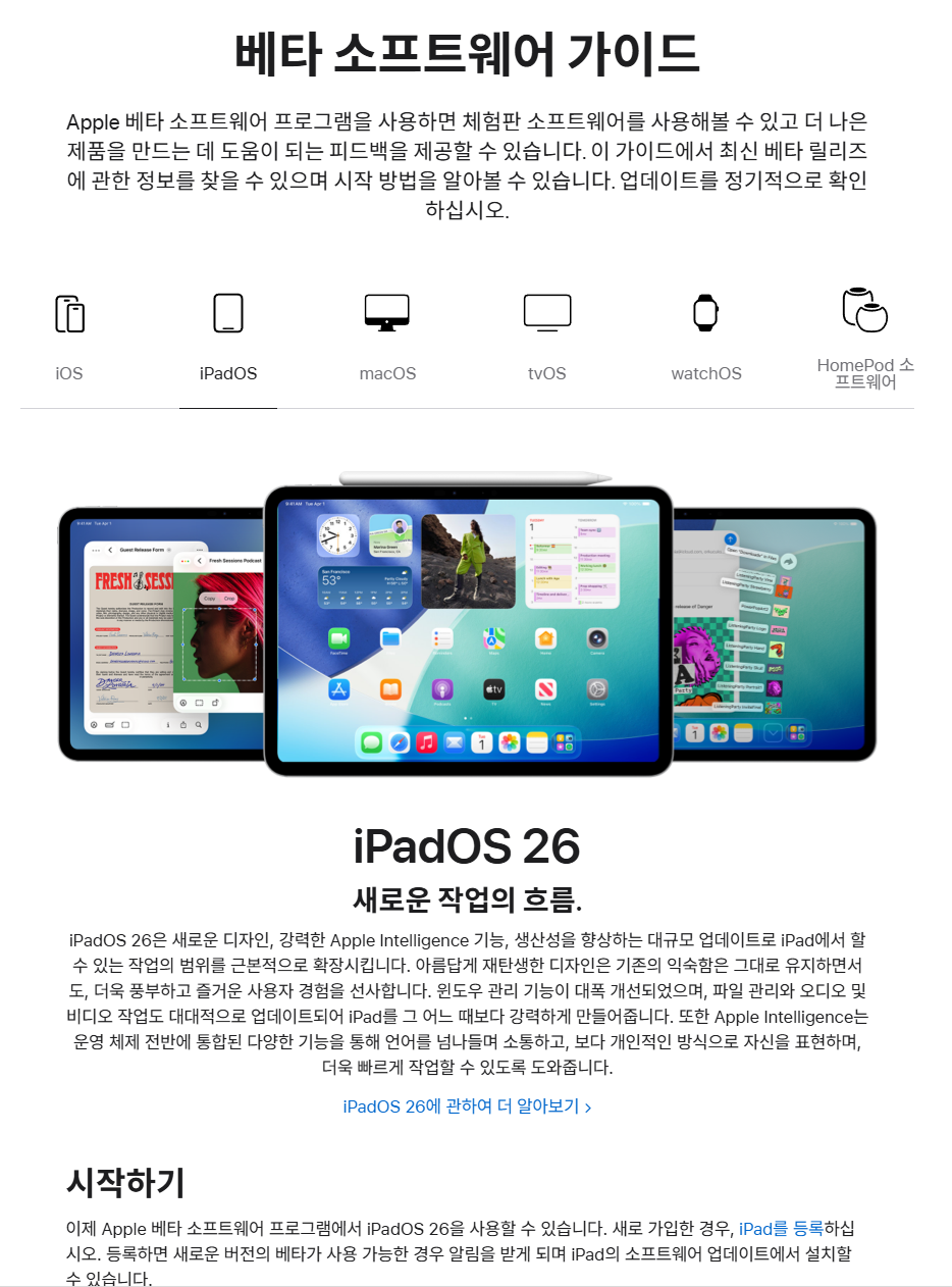 이제 아이패드에 IOS26을 설치할 수 있다.